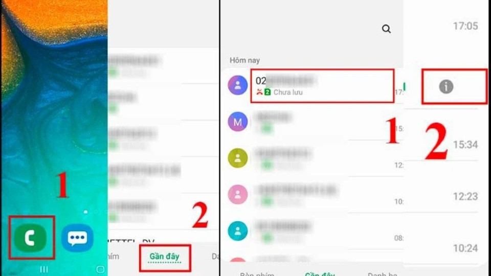 Nếu bạn đang dùng điện thoại Android, việc chặn các số điện thoại lạ hoặc cuộc gọi 0248 đáng ngờ có thể thực hiện theo các bước sau. Đầu tiên, hãy mở ứng dụng “Điện thoại” trên màn hình chính của bạn. Sau đó, chọn mục “Gần đây” hoặc “Nhật ký cuộc gọi” để tìm kiếm số điện thoại mà bạn muốn chặn. Khi đã xác định được số cần chặn, hãy chạm vào biểu tượng “i” hoặc dấu ba chấm bên cạnh số đó để xem thông tin chi tiết.