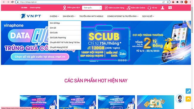 - Truy cập website chính thức của Vinaphone: Tìm đến mục “Di động” và chọn “Sim số”.