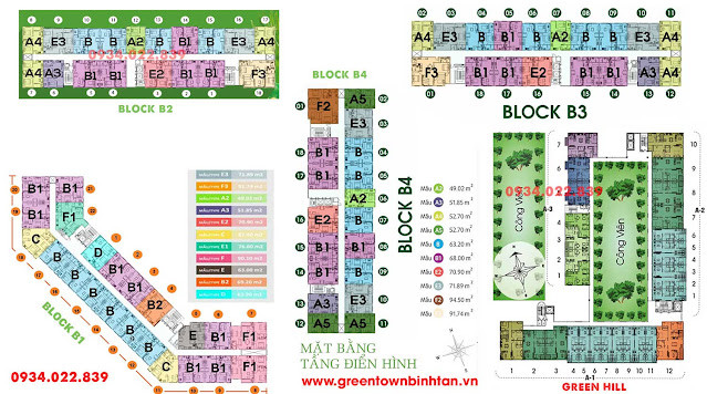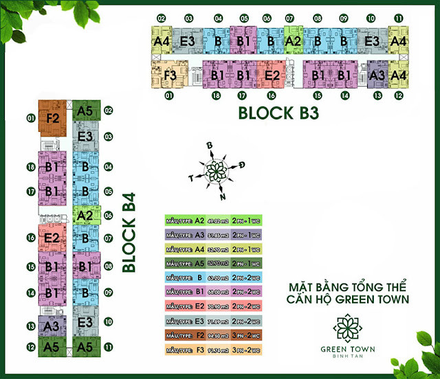 Sơ đồ mặt bằng chi tiết các căn hộ block B3 B4 Green Town Bình Tân