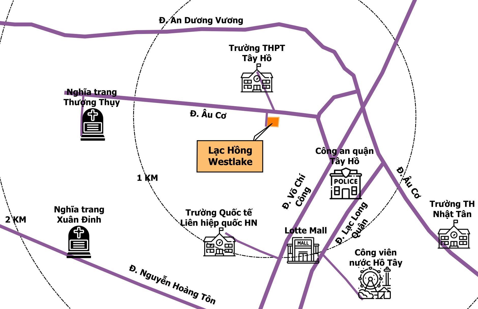 Vị trí của chung cư Lạc Hồng Westlake rất thuận lợi cho việc đi lại. Dự án nằm gần cầu Nhật Tân và đường Võ Chí Công, dễ dàng kết nối với trung tâm Hà Nội, sân bay Nội Bài và các tỉnh lân cận. Ngoài ra, việc gần Hồ Tây cũng mang lại môi trường sống trong lành và tiện ích giải trí phong phú.