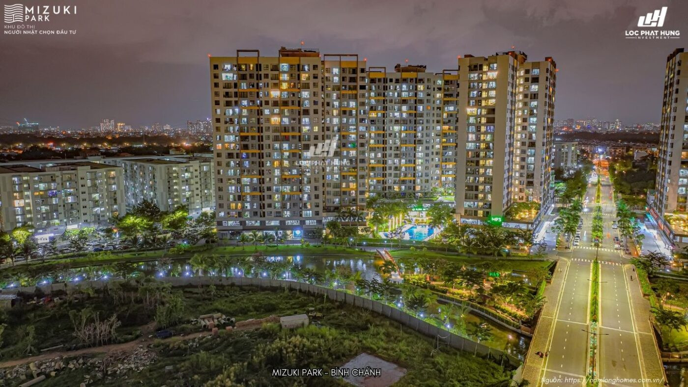 Ảnh thực tế ban đêm chung cư Mizuki Park Bình Chánh