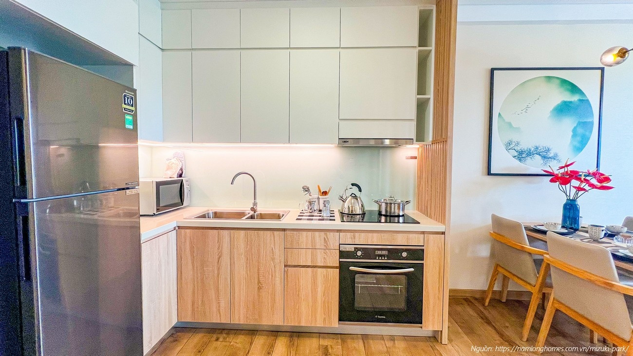 Phòng bếp hiện đại trong nhà mẫu Mizuki Park 58m2