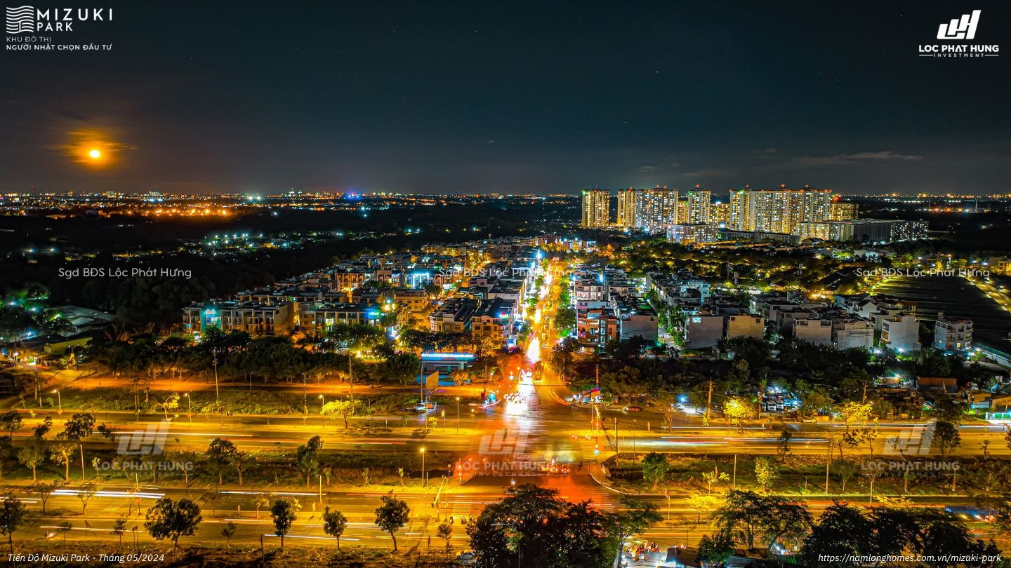 Hình ảnh thực tế buổi tối khu đô thị Mizuki Park