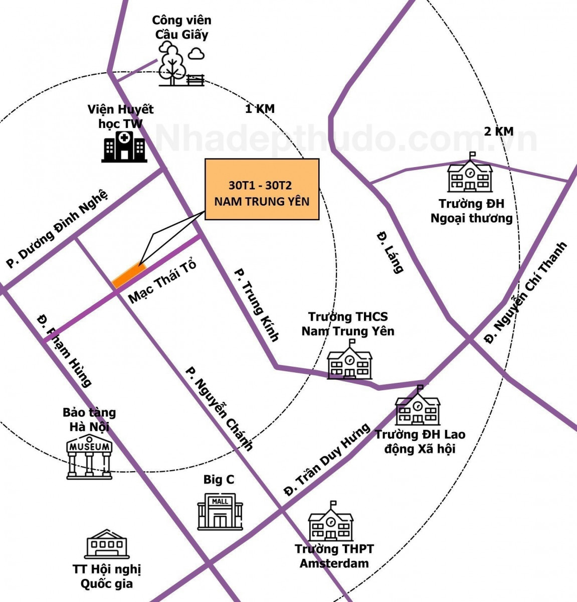 Bản đồ vị trí dự án chung cư 30T1 30T2 Nam Trung Yên, thể hiện khả năng kết nối giao thông tiện lợi