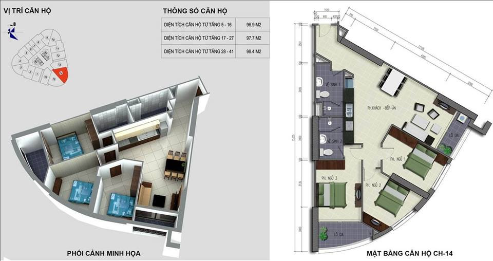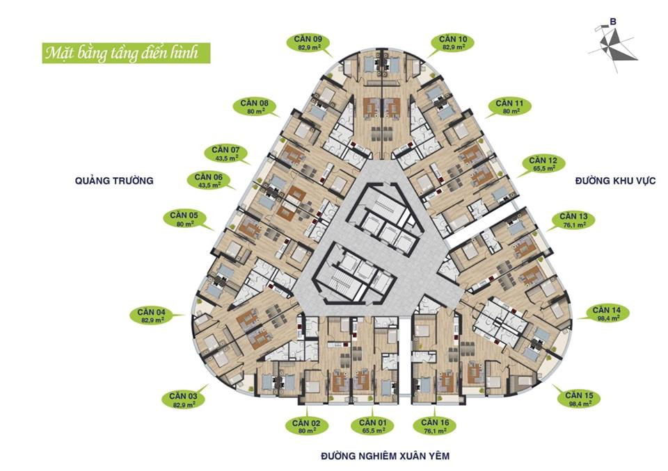 Mặt bằng tổng thể căn hộ chung cư Tòa B Vinaconex 2 VC2 Golden Heart