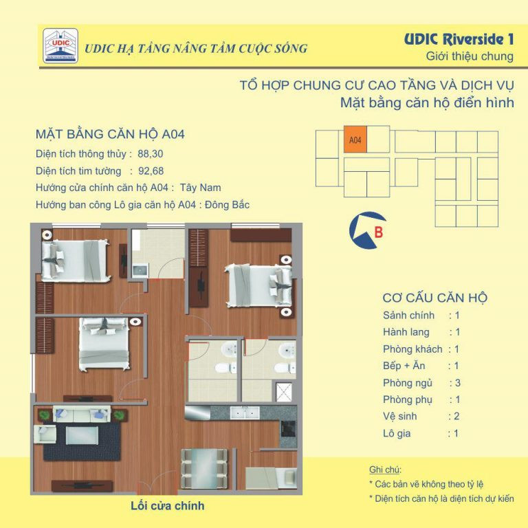 Mặt bằng căn hộ A1 và A8 ba phòng ngủ tại chung cư UDIC Riverside, không gian rộng rãi.Mặt bằng căn hộ A1 và A8 ba phòng ngủ tại chung cư UDIC Riverside, không gian rộng rãi.