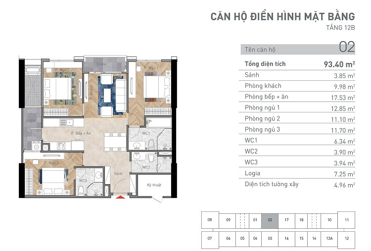 | Căn hộ 3PN cỡ trung | 93m2 – 97m2 – 118m2 | 8,0 tỷ – 8,5 tỷ – 12 tỷ |