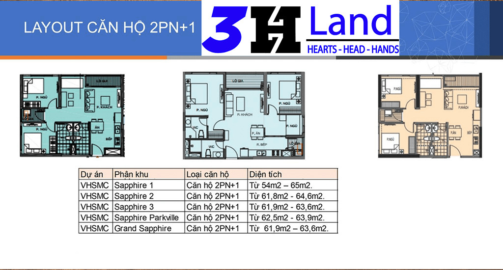 Đối với căn hộ 2 phòng ngủ +1, diện tích từ 54m2 đến 65m2, cũng có mặt ở các phân khu S1, S2, S3, S4 và Grand Sapphire. Phần “+1” linh hoạt có thể biến thành phòng làm việc hoặc thêm một phòng ngủ. Với phòng khách rộng, ban công lớn, một nhà vệ sinh, không gian sống kết nối từ bếp ra phòng khách tạo cảm giác vô cùng thoải mái. Đây là lựa chọn tuyệt vời cho các gia đình đông thành viên (6-8 người) hoặc các nhóm bạn muốn ở chung, với giá bán chung cư Vinhomes Smart City khoảng 4 tỷ đến 5 tỷ đồng.