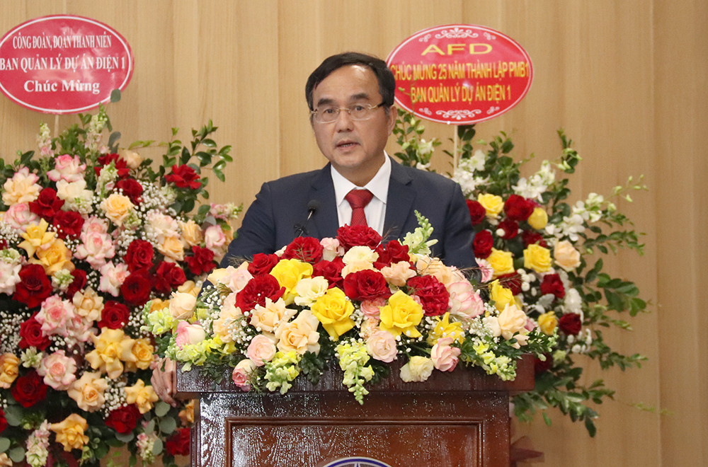 Thứ trưởng Bộ Công Thương Đặng Hoàng An phát biểu định hướng phát triển tại lễ kỷ niệm của Ban Quản lý dự án điện 1
