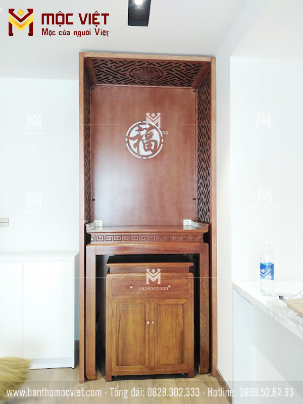Bàn thờ chung cư hiện đại bằng gỗ sồi