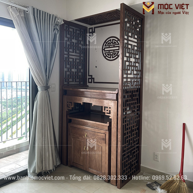 Phòng thờ chung cư hiện đại với vách ngăn tinh tế