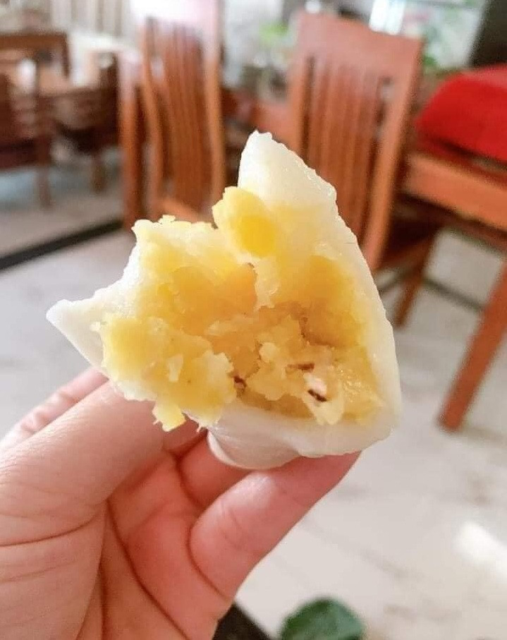 • Nhân ngọt: Loại nhân này được làm từ đậu xanh lòng vàng, đường và dừa nạo. Đậu xanh được đồ chín, nghiền mịn rồi trộn đều với đường và dừa, tạo nên vị ngọt thanh, bùi béo đặc trưng. Nhân ngọt thường được ưa chuộng vào những dịp lễ tết hoặc dùng làm quà biếu.