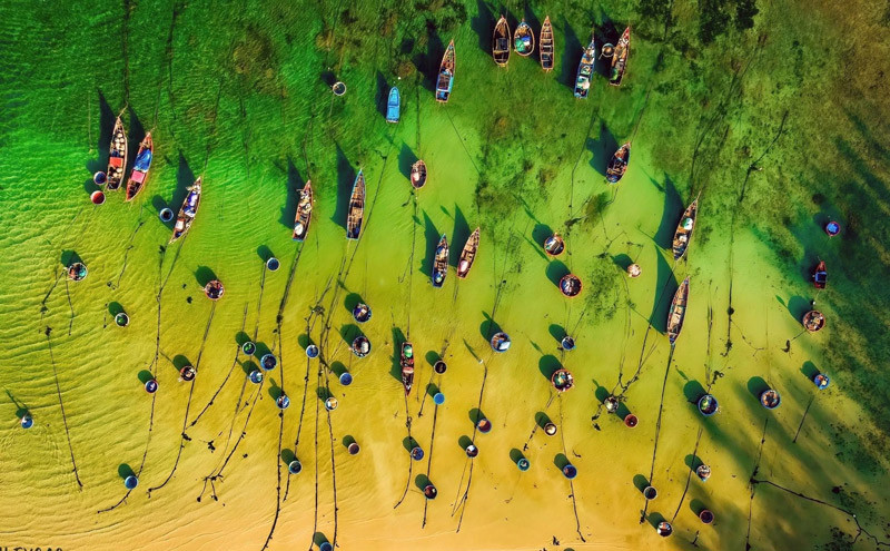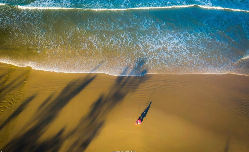 Toàn cảnh Biển Châu Tân Quảng Ngãi nhìn từ trên cao, hiện lên vẻ đẹp tự nhiên hài hòa