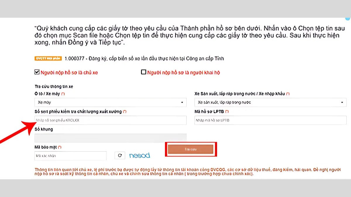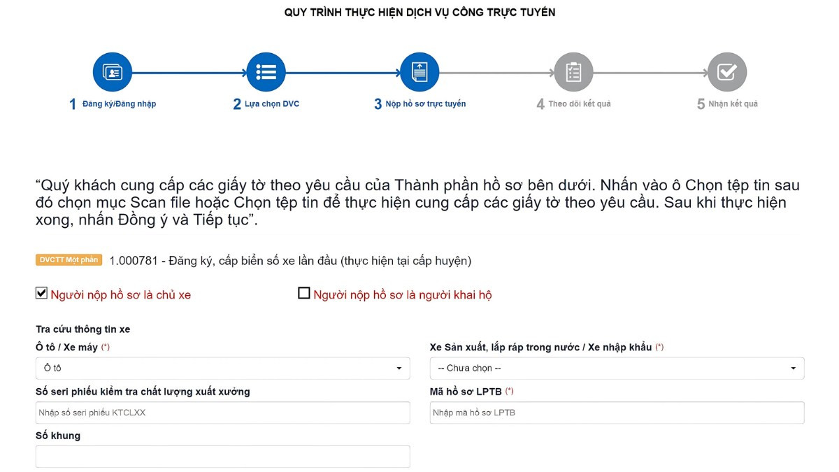 • Bước 2: Nộp hồ sơ đăng ký xe trực tuyến hoặc trực tiếp