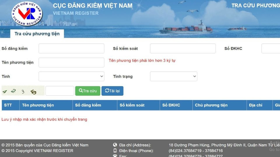 2. Nhập thông tin biển số xe để tra cứu: Tại giao diện tra cứu, bạn cần nhập chính xác các thông tin liên quan đến biển số xe và giấy chứng nhận đăng kiểm. Lưu ý rằng để có thể tra cứu, phương tiện phải có tem và giấy chứng nhận kiểm định hiện tại.
