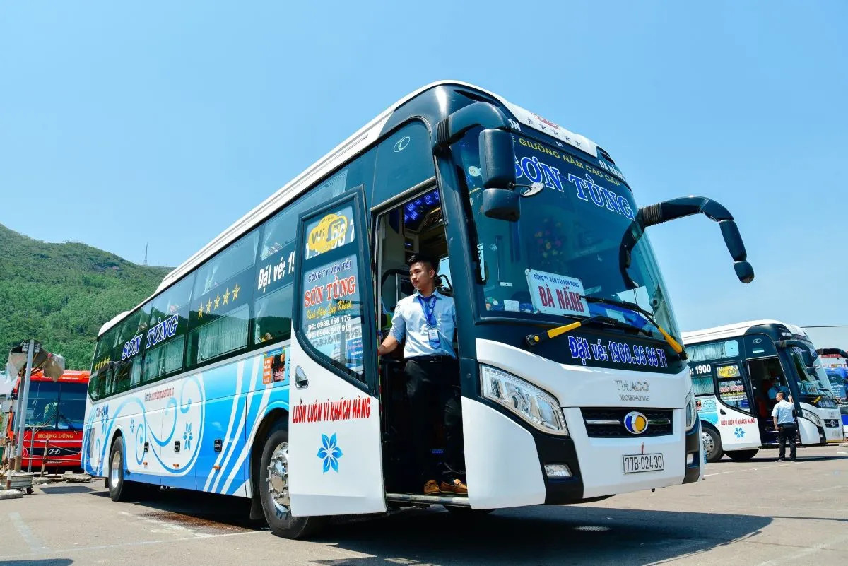Hình ảnh xe khách Sơn Tùng, minh họa phương tiện di chuyển phổ biến trên tuyến đường bình định đến đà nẵng, cung cấp dịch vụ vận tải hành khách chất lượng.
