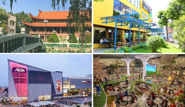 - Trung tâm thương mại AEON Mall Bình Tân: Đây là một trong những trung tâm thương mại lớn và hiện đại nhất khu vực. AEON Mall Bình Tân không chỉ là nơi mua sắm với hàng trăm thương hiệu nổi tiếng mà còn tích hợp nhiều khu vui chơi giải trí, rạp chiếu phim, khu ẩm thực đa dạng, thu hút đông đảo cư dân và du khách.