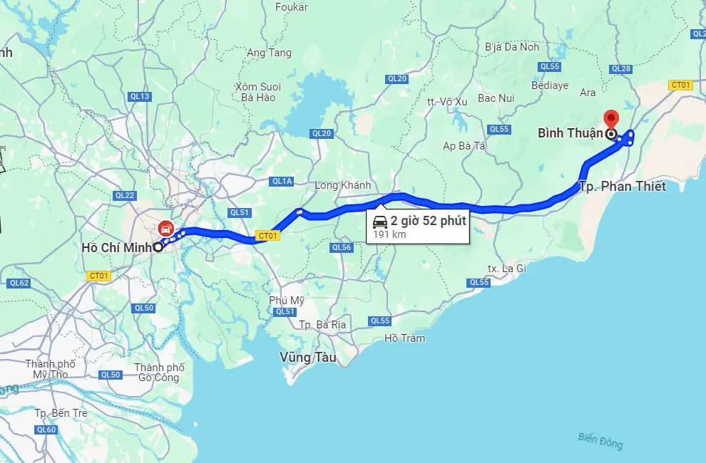 Bình Thuận cách Sài Gòn bao nhiêu km nếu đi bằng đường bộ là chính xác bao nhiêu?