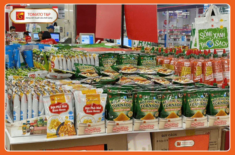 Coopmart là một trong những hệ thống siêu thị lớn nhất và uy tín hàng đầu tại Việt Nam, đồng thời cũng là đối tác phân phối chính thức của bột phô mai Tornado từ công ty TOMATO T&P. Hệ thống siêu thị này có mặt rộng khắp cả nước và luôn nhận được sự tin tưởng đặc biệt từ người tiêu dùng. Do đó, để mua sản phẩm bột phô mai Tornado chính hãng và chất lượng, khách hàng có thể yên tâm đến các siêu thị Coopmart trên toàn quốc. Điều quan trọng cần lưu ý là bột phô mai Tornado thường được trưng bày tại quầy bột gia vị các loại, thuộc ngành hàng thực phẩm công nghệ, giúp bạn dễ dàng tìm kiếm khi thắc mắc bột phô mai mua ở đâu.