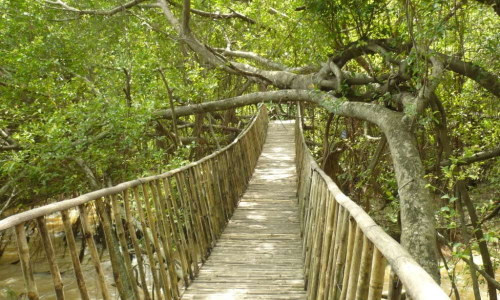 Vẻ đẹp cảnh quan thiên nhiên tại khu du lịch Buôn Đôn với cây cầu bắc qua sông