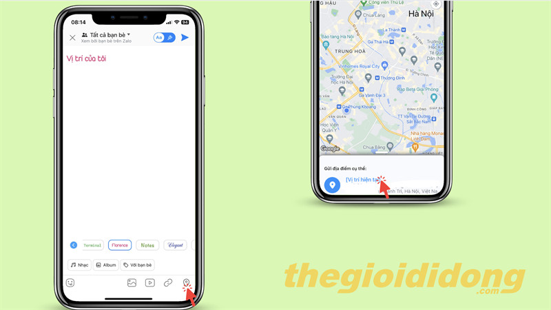 Đăng tải trạng thái Zalo kèm thông tin vị trí