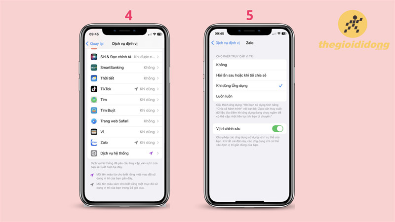 Cài đặt quyền truy cập vị trí cho ứng dụng Zalo trên iPhone