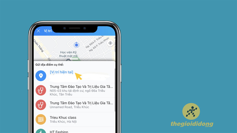 Tùy chọn vị trí trong giao diện chat Zalo