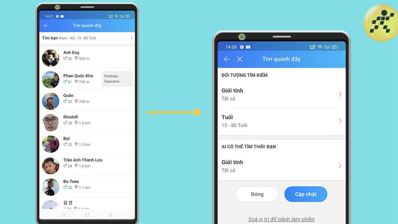 Sau khi cấp quyền, bạn có thể thiết lập các tiêu chí tìm kiếm như giới tính, độ tuổi, và khoảng cách để lọc ra những người phù hợp với mục đích của bạn. Màn hình sẽ hiển thị danh sách những người dùng Zalo ở gần vị trí của bạn, cùng với khoảng cách ước tính. Tiện ích này không chỉ giúp kết nối bạn bè mà còn có thể hỗ trợ bạn trong việc khám phá cộng đồng địa phương, nơi bạn đang cân nhắc mua hoặc thuê nhà.