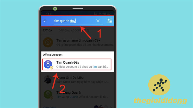 Để sử dụng tiện ích “Tìm bạn quanh đây”, bạn hãy mở ứng dụng Zalo và gõ từ khóa “Tìm quanh đây” vào thanh tìm kiếm. Tiện ích này sẽ xuất hiện trong kết quả tìm kiếm. Sau đó, bạn cần bấm vào “Quan tâm” để kích hoạt và sử dụng tiện ích này.