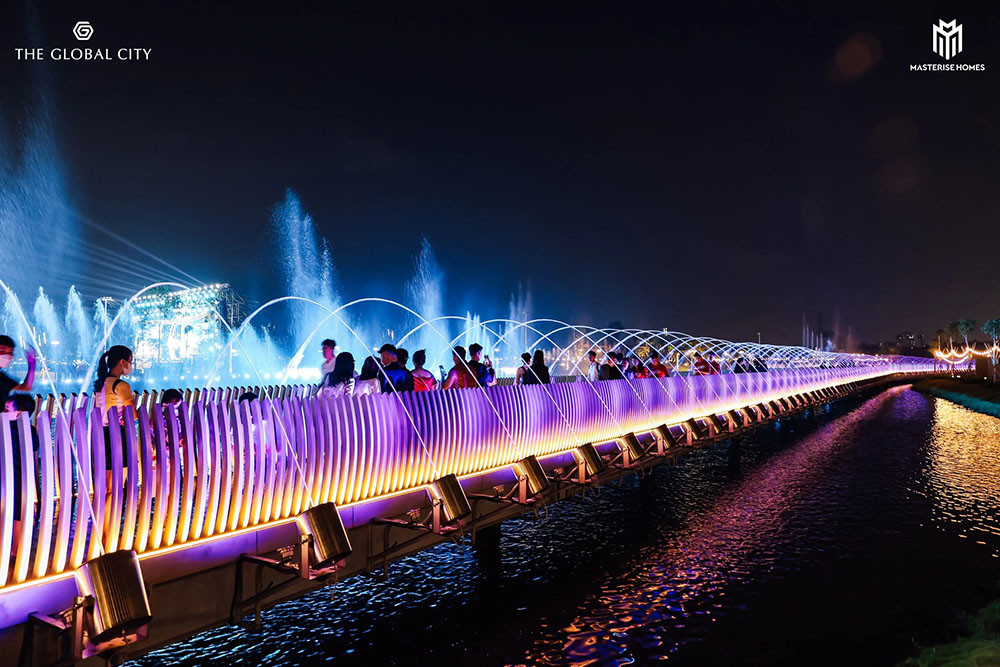 Không chỉ là một công trình cảnh quan, Cầu Ánh Trăng còn là một phần của hệ sinh thái tiện ích “Live – Work – Play” (Sống – Làm việc – Vui chơi) toàn diện tại The Global City. Xung quanh khu vực cầu là hệ thống các nhà hàng sang trọng, quán cà phê ấm cúng và các cửa hàng mua sắm đa dạng, đáp ứng mọi nhu cầu của du khách và cư dân. Sự hiện diện của cây cầu ánh trăng này không chỉ làm tăng giá trị thẩm mỹ mà còn nâng cao chất lượng cuộc sống, biến The Global City thành một khu đô thị đáng sống, nơi mọi tiện ích đều trong tầm tay.