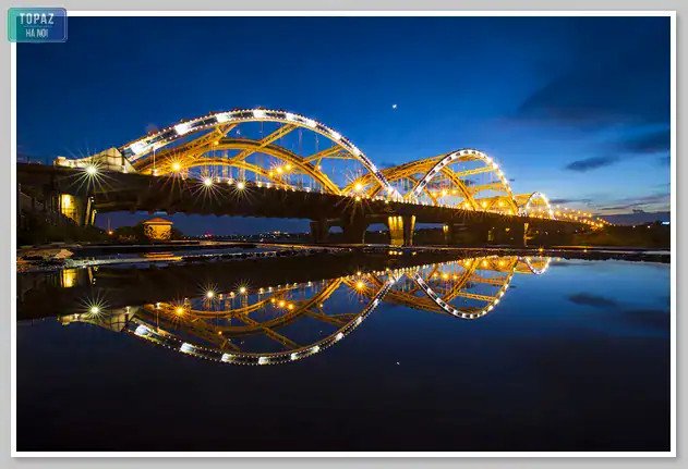 Vẻ đẹp lung linh của cầu Đông Trù vào ban đêm, tô điểm cho cảnh quan đô thị khu vực.