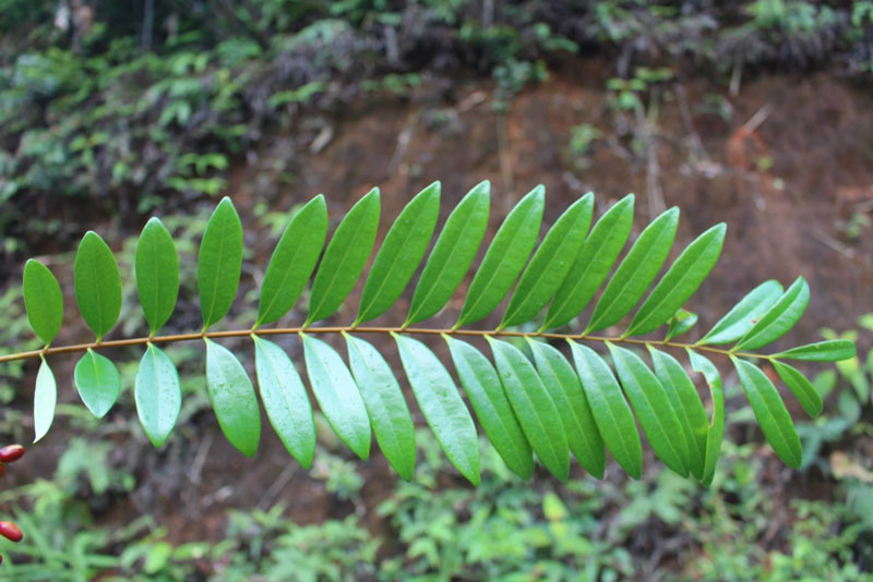 Lá cây mật nhân với hình dáng kép lông chim đặc trưng
