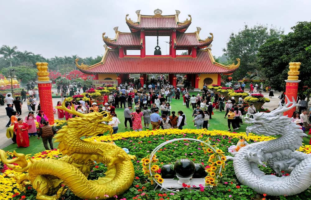 Quang cảnh rộng lớn và thoáng đãng của khuôn viên chùa Khai Nguyên, một điểm đến thu hút đông đảo khách du lịch