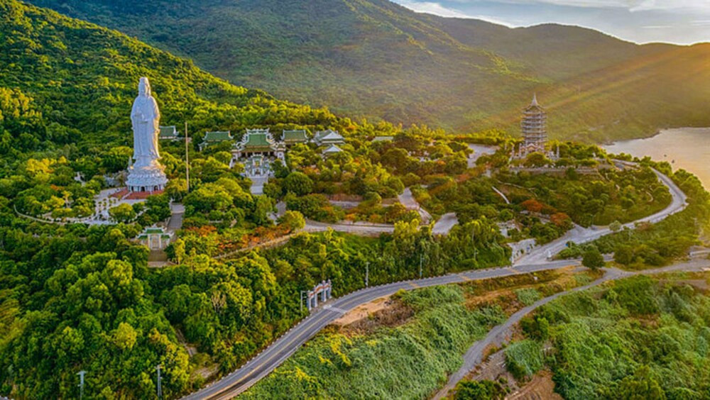 Tượng Phật Bà Quan Âm chùa Linh Ứng Đà Nẵng cao 67m, là biểu tượng kiến trúc tâm linh nổi bật, thu hút đông đảo du khách đến chiêm bái