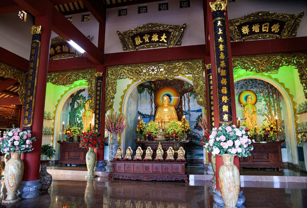 Không gian chánh điện trang nghiêm tại chùa Linh Ứng Bãi Bụt