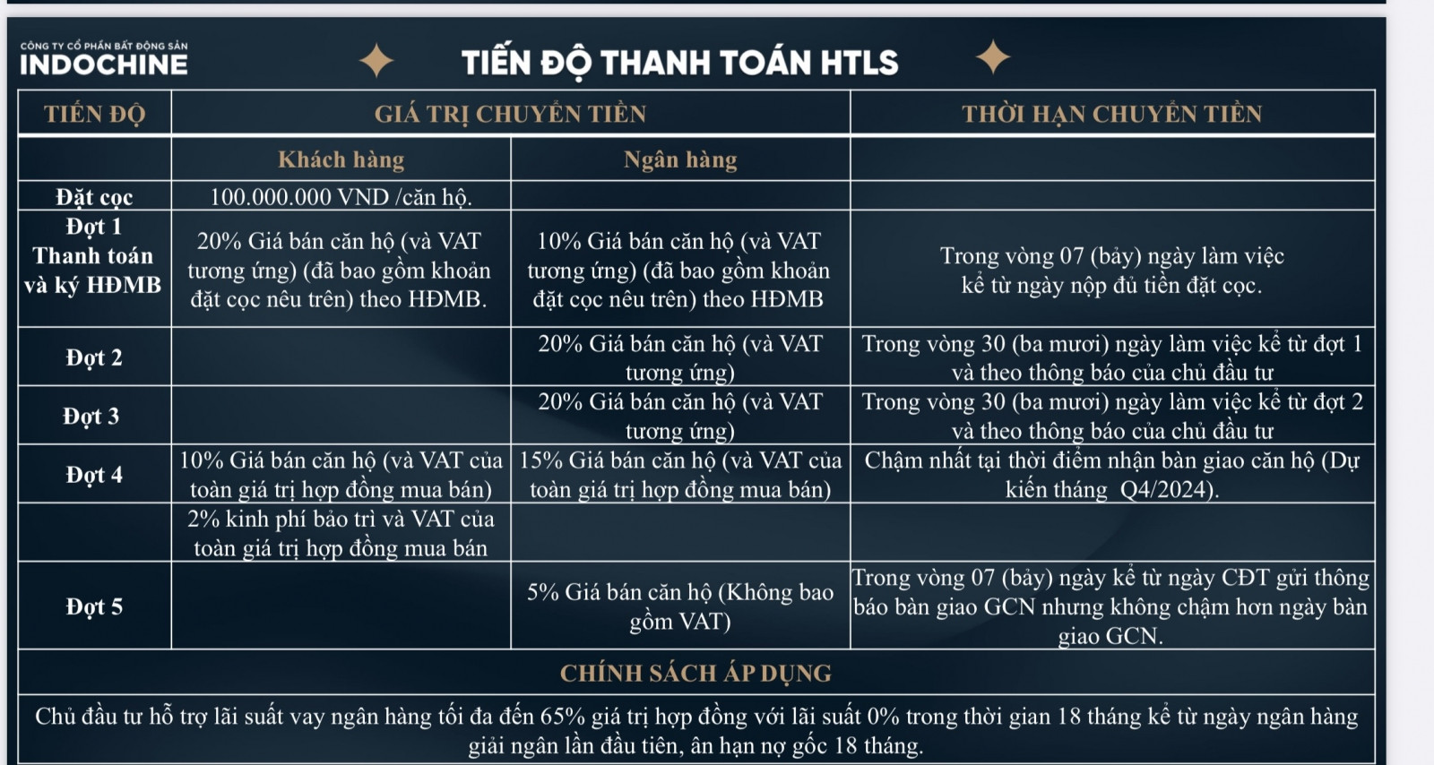 | Đơn vị phát triển/phân phối: | Công Ty Cổ Phần Bất Động Sản Indochine |