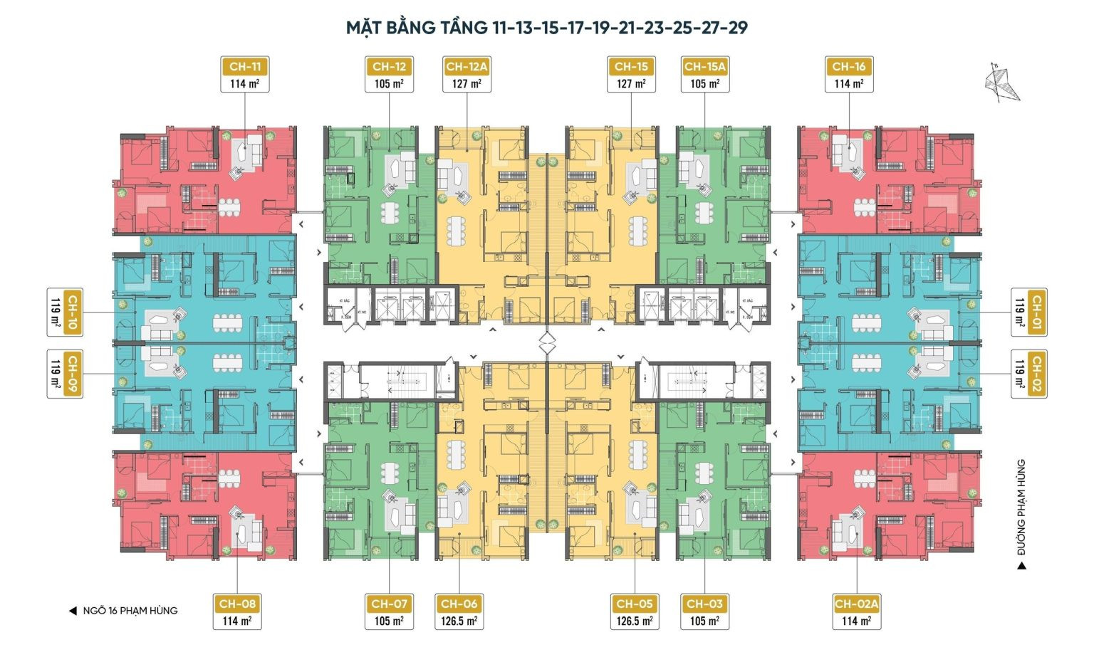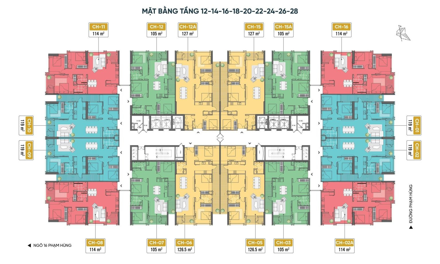 Mặt bằng chung cư 18 Phạm Hùng Capital Elite tầng chẵn
