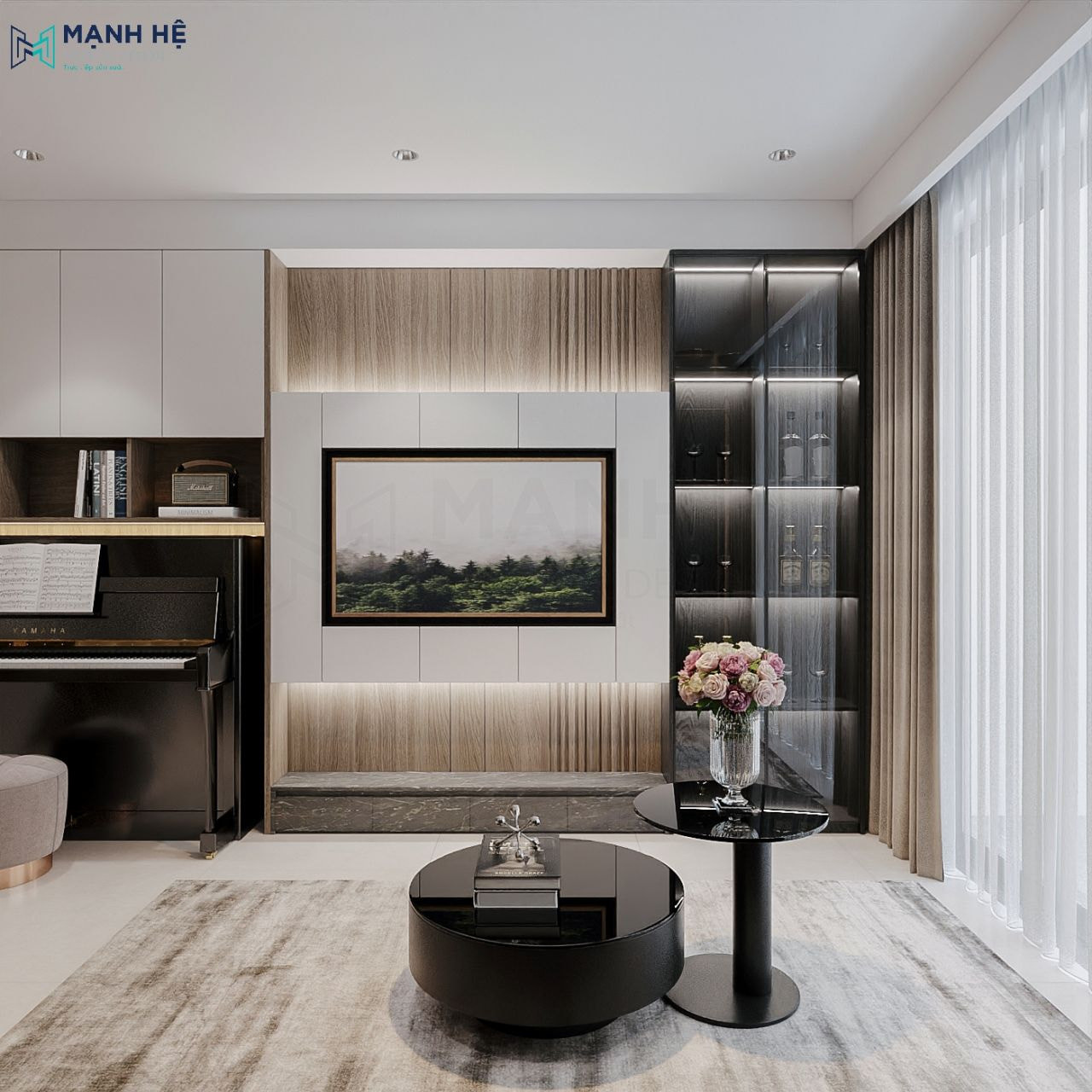 Đồng thời, việc kết hợp ánh sáng tự nhiên và ánh sáng nhân tạo một cách hợp lý sẽ tạo hiệu ứng thị giác mở rộng không gian đáng kể. Tối đa hóa nguồn sáng tự nhiên bằng cách sử dụng rèm cửa mỏng, màu sáng hoặc không che chắn quá nhiều cửa sổ. Về ánh sáng nhân tạo, hãy sử dụng đa dạng các loại đèn như đèn trần, đèn âm trần, đèn hắt tường và đèn sàn để tạo điểm nhấn và chiếu sáng đầy đủ cho từng khu vực, tránh để không gian bị tối tăm, tù túng.