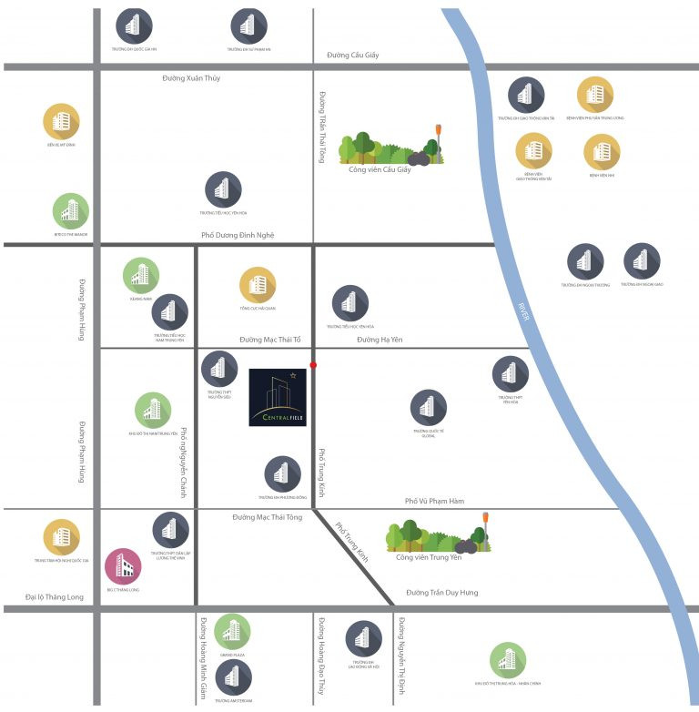 Ngoài ra, dự án chỉ cách Công viên Cầu Giấy 1 km và Công viên Nam Trung Yên, mang đến không gian xanh mát để vui chơi, tập thể dục và thư giãn. Các trung tâm thương mại, vui chơi giải trí và siêu thị lớn của khu vực cũng nằm trong bán kính gần, điển hình là siêu thị Big C cách 1.2 km, Trung tâm hội nghị quốc gia và Bệnh viện Giao thông vận tải cách 1.5 km. Sự kết nối thuận tiện này đảm bảo một cuộc sống đầy đủ và hiện đại cho cư dân của Central Point 219 Trung Kính.