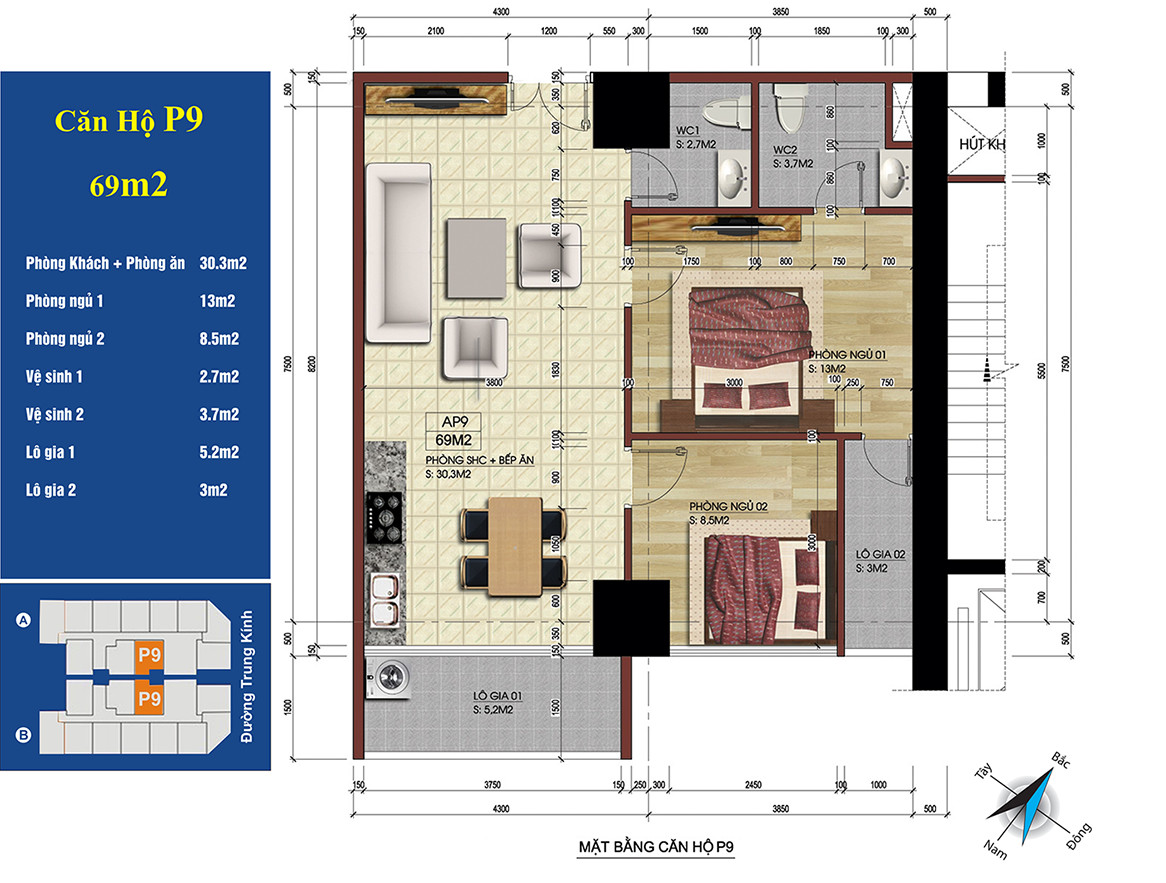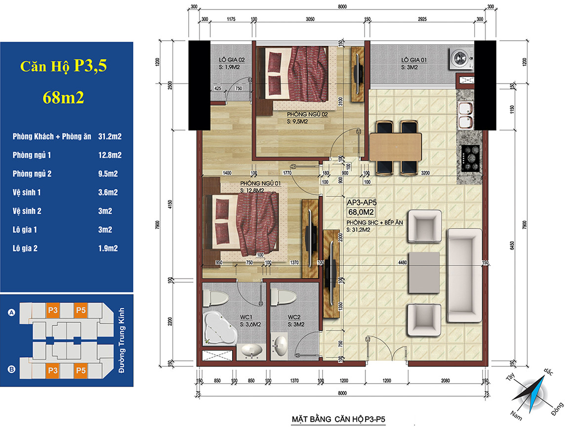 Mặt bằng chi tiết căn hộ số 03, 05 tại dự án căn hộ 219 Trung Kính
