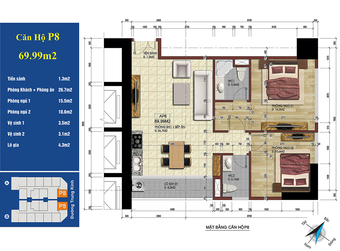 Mặt bằng chi tiết căn hộ số 08 tại dự án Central Point Trung Kính, tối ưu ánh sáng tự nhiên