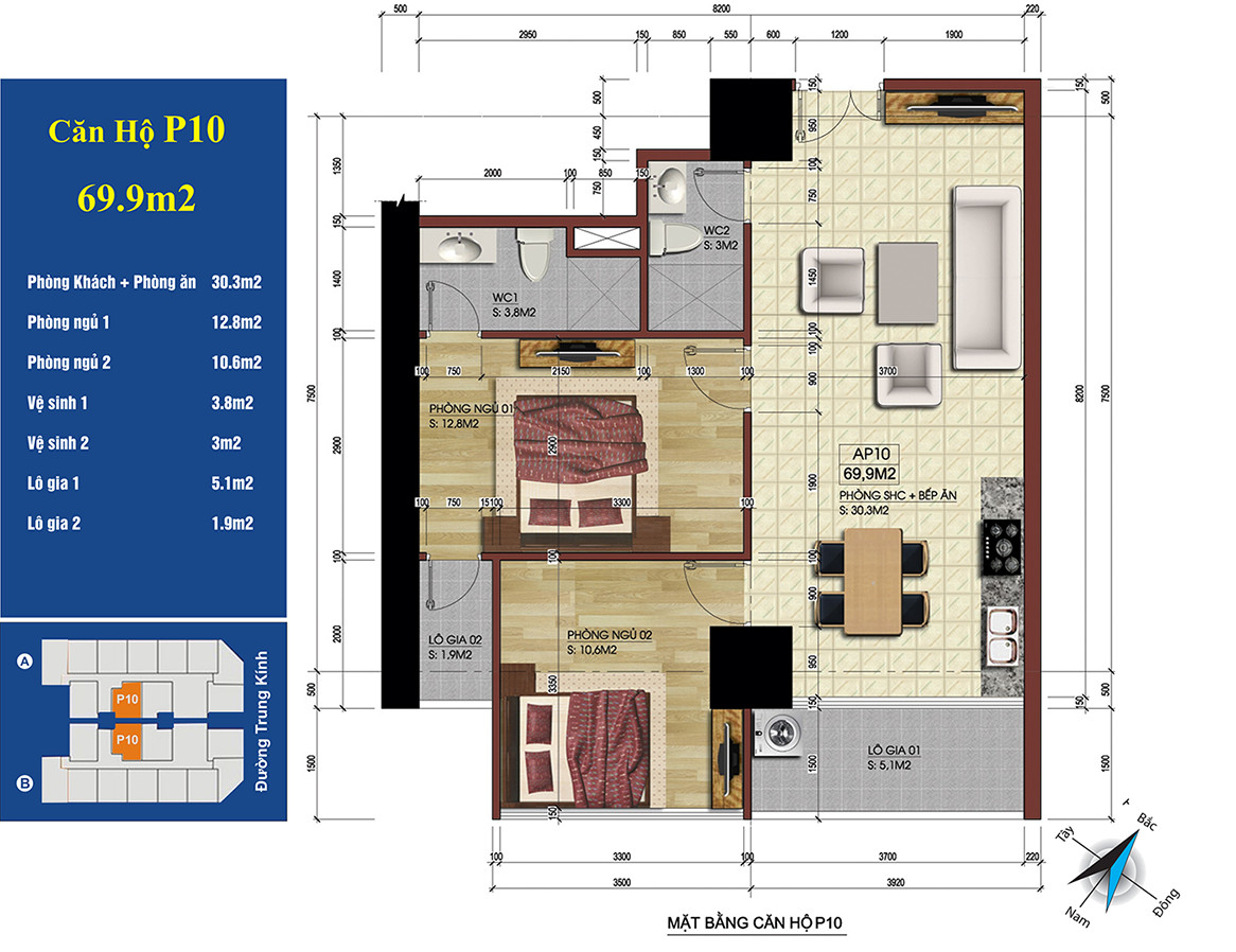 Mặt bằng chi tiết căn hộ số 10 tại dự án căn hộ 219 Trung Kính Central Point