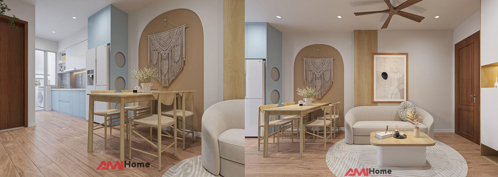 Phối cảnh tổng quan không gian sống ấm cúng trong căn hộ chung cư 30T Nam Trung Yên