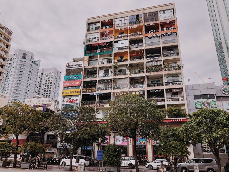 Tòa nhà 9 tầng này, dù khiêm tốn về chiều cao so với các công trình lân cận như Bitexco, vẫn giữ được nét quyến rũ đặc biệt. Mặt tiền của tòa nhà nhìn thẳng ra phố đi bộ Nguyễn Huệ náo nhiệt, mang đến tầm nhìn tuyệt đẹp và không khí sôi động. Sự kết hợp giữa kiến trúc cổ điển và những chi tiết hiện đại của các cửa hàng, quán cà phê đã tạo nên một phong cách độc đáo, không lẫn vào đâu được.