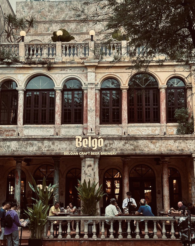 Toàn cảnh biệt thự cổ kính đã được biến đổi thành gastropub, đối diện chung cư 42 Tôn Thất Thiệp, lung linh về đêm.