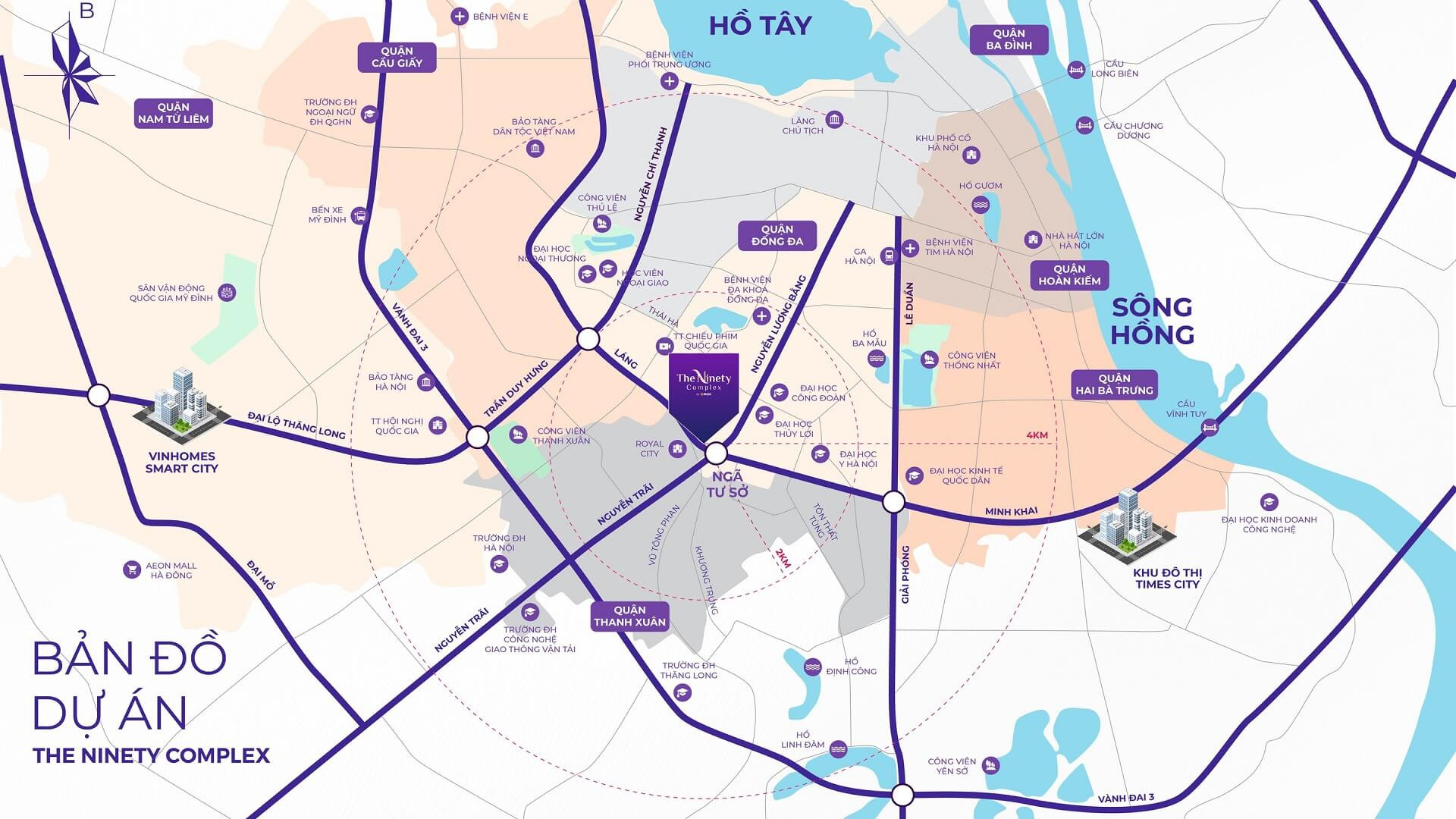 Sơ đồ kết nối vùng của dự án The Ninety Complex 90 Đường Láng