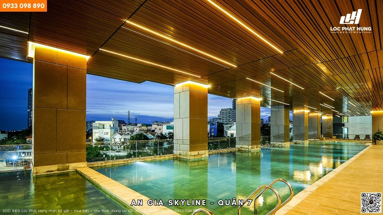 Cư dân tại An Gia Skyline được tận hưởng một chuỗi tiện ích nội khu phong phú, được quy hoạch đồng bộ ngay khi dự án bàn giao. Nổi bật là hồ bơi tràn bờ nước ấm Skypearl tại tầng 2, với tầm nhìn bao quát toàn cảnh thành phố và sông Sài Gòn, mang lại những giây phút thư giãn tuyệt vời. Khu vực sảnh đón được thiết kế chuẩn 4 sao, tạo ấn tượng sang trọng ngay từ bước chân đầu tiên.
