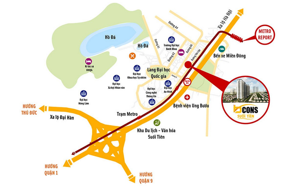 • Hạ tầng giao thông hiện đại: Gần Bến xe Miền Đông mới và các ga Metro số 13 – Suối Tiên, ga Metro số 14 – Bến xe Miền Đông mới, mang đến lợi thế lớn về kết nối giao thông công cộng, giảm thiểu thời gian di chuyển vào trung tâm.