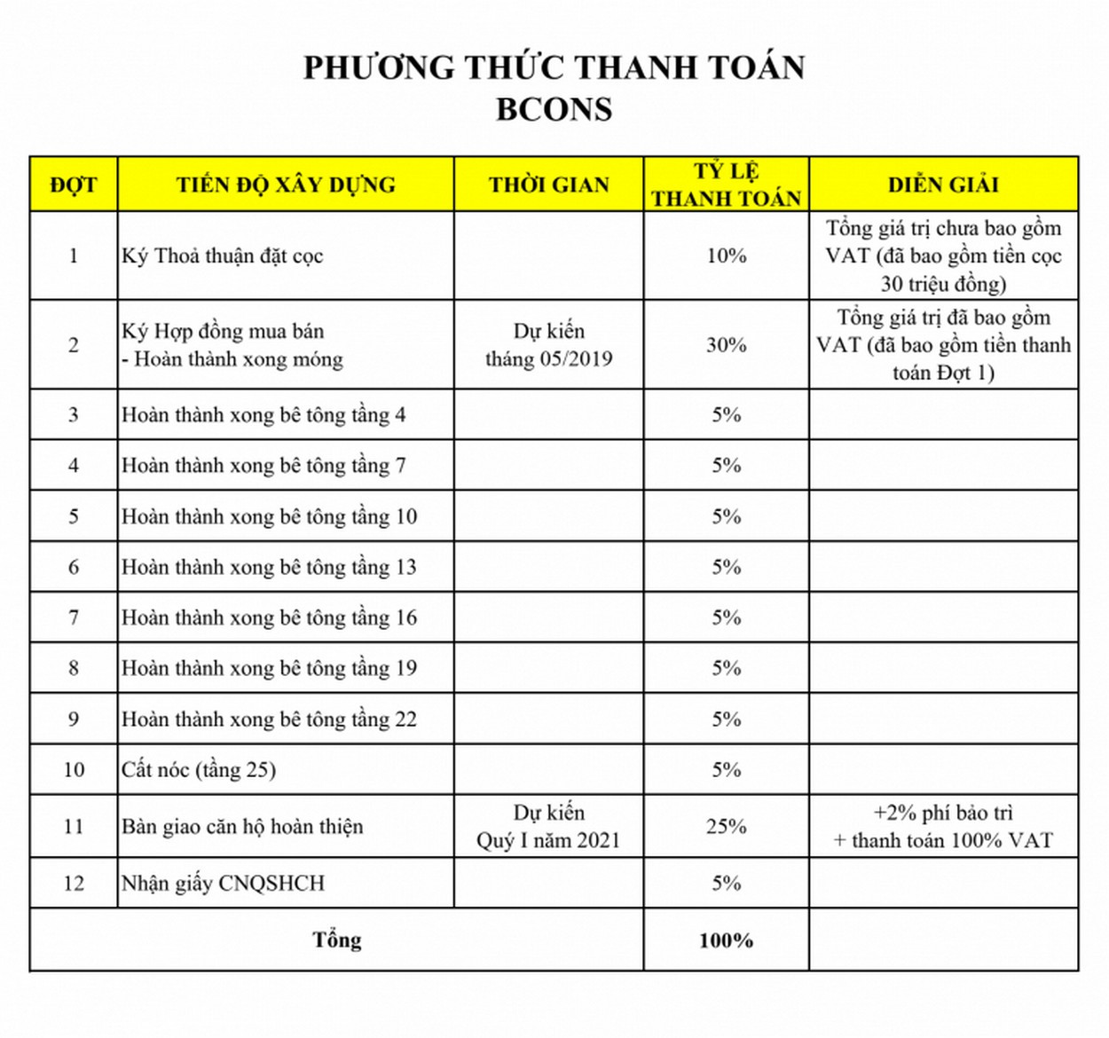Bảng phương thức thanh toán linh hoạt khi mua chung cư Bcons Miền ĐôngBảng phương thức thanh toán linh hoạt khi mua chung cư Bcons Miền Đông