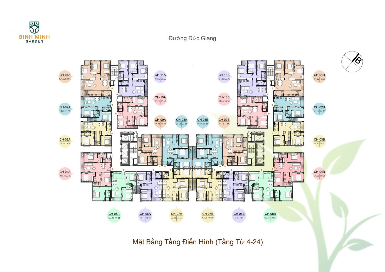 Mặt bằng tổng thể các tầng căn hộ Bình Minh Garden từ 4 đến 24
